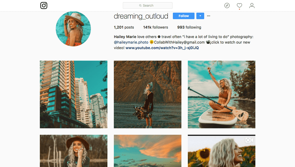 Recently found this awesome adventurer blogger/YouTuber. What drew me to her IG feed is the orange and blue hues that she uses in all her photos. Together with her boyfriend, they have a Youtube travel channel that chronicles their adventures around the US.