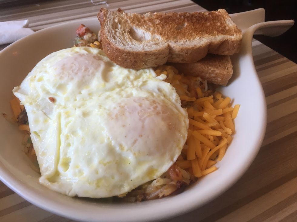 While Ama Bistro makes a mean omelette, there is absolutely nothing better than their “create your own skillet.” This is a heavenly ceramic skillet filled with hash browns, veggies, cheese, meat, and eggs. I know, insane, right? Trust me, it tastes even better than it sounds!