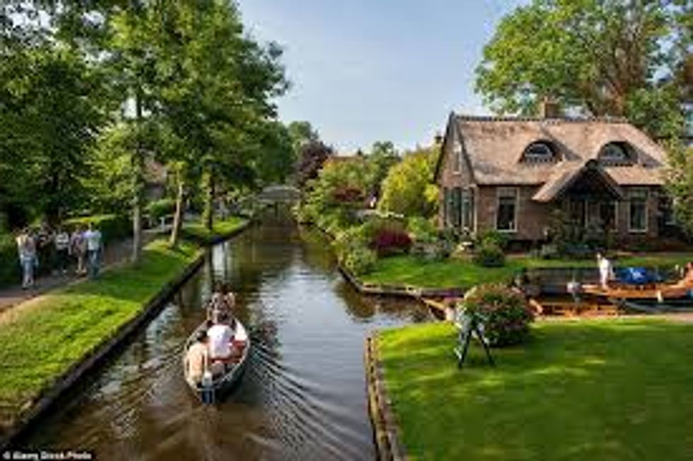 Giethoorn, or "The Village Without Streets" is a beautiful and peaceful village in the Netherlands that uses small canals and boats (punts) rather than streets and cars typical of other modern cities. To walk or cycle through the small footpaths that surround the canals is one of the Giethoorn's pleasures, and guided boat tours are a common love for tourists.
