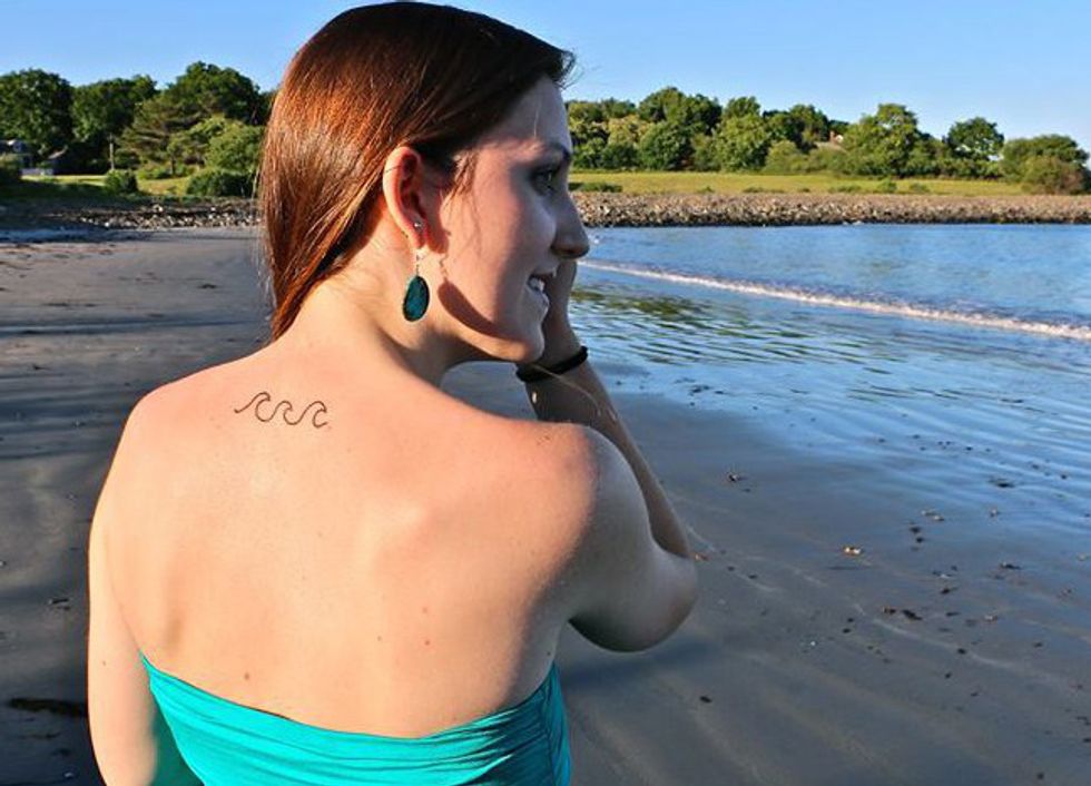 “When it comes to tattoos, I love simplicity. I have a drawing of three simple waves on my back, just below my neck. The waves and the ocean have always been an important part of my life - I grew up on the coast and have known the water intimately since birth. (I mean that literally, as I was held in a pool of water by my dad immediately after being born.) The coast is a home to me, a place where my worries shrink and my thoughts quiet. I love that there is an infinite beauty about the sea, but also a sense of wild, an expanse that will never be tamed. And waves are such a perfect representation of the ups and downs of life, of the current that carries on no matter what. The ocean will always be a part of who I am, and so I carry its depths on my back.”