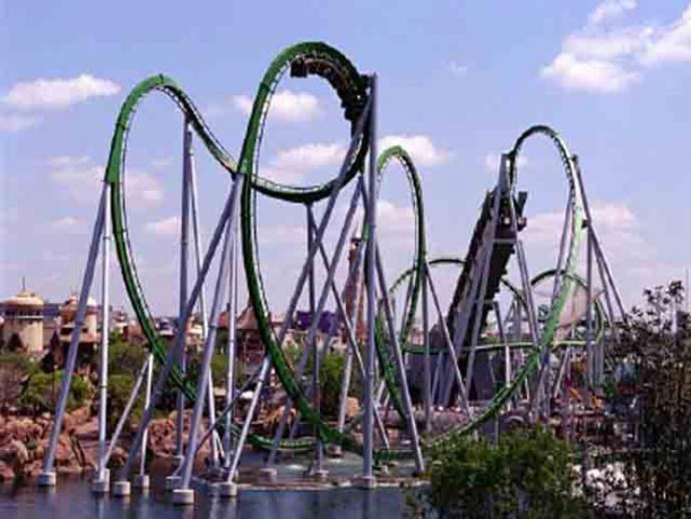 In Islands of Adventures' Marvel Super Hero Island lies the big, green and mean Incredible Hulk ride. Before you get onto the car, the line takes you through Bruce Banner's laboratory, where you can even watch video clips of "The Hulk!" Once you make it to the ride, and have made it through the agonizingly slow crawl up the tracks, you're jolted about 40 miles per hour into swirls, loops, twists and turns. And even more exciting: Universal has recently closed and reopened a renovated Incredible Hulk ride, enhancing and refurbishing it! The ride normally doesn't have that long of a wait, mostly because each car can hold about 32 people, so The Incredible Hulk ride is definitely one to check out at Universal's Islands of Adventures.