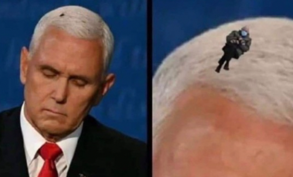 It was at the 2020 vice president debate against Mike Pence and Kamala Harris when that fly that landed on Pence's head became an internet sensation. Now in this meme Biden is now that small fly on Pence's head.