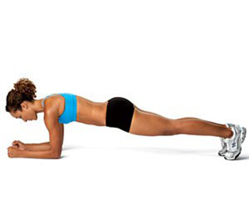 Now get up off of your back! It's time for some planking! Raise yourself up on both elbows, making sure the elbows are directly below the shoulders. Keep your core and booty tight for this one, back flat and head on a level plane with the rest of your body. Hold for at least one minute. With each workout tack on another 15 seconds until you reach two minutes. Keep going for longer than that if you feel so inclined!
