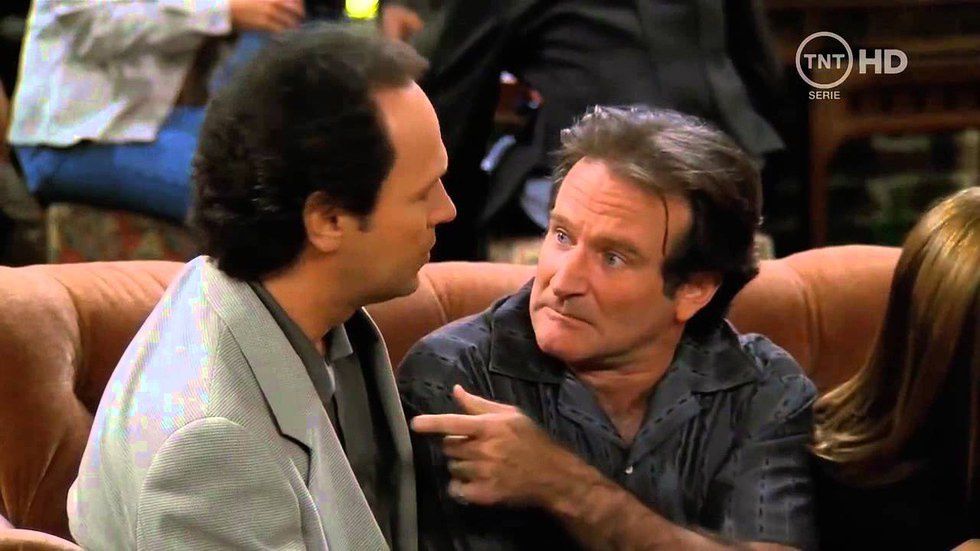 The Billy Crystal-Robin Williams scene wasn’t in the original script, the actors just happen to be in same building and made a special appearance. Robin Williams is absolutely fantastic in this scene. His accent and crying about his wife is hysterical. He is by far the best celebrity guest star on "Friends" hands down.