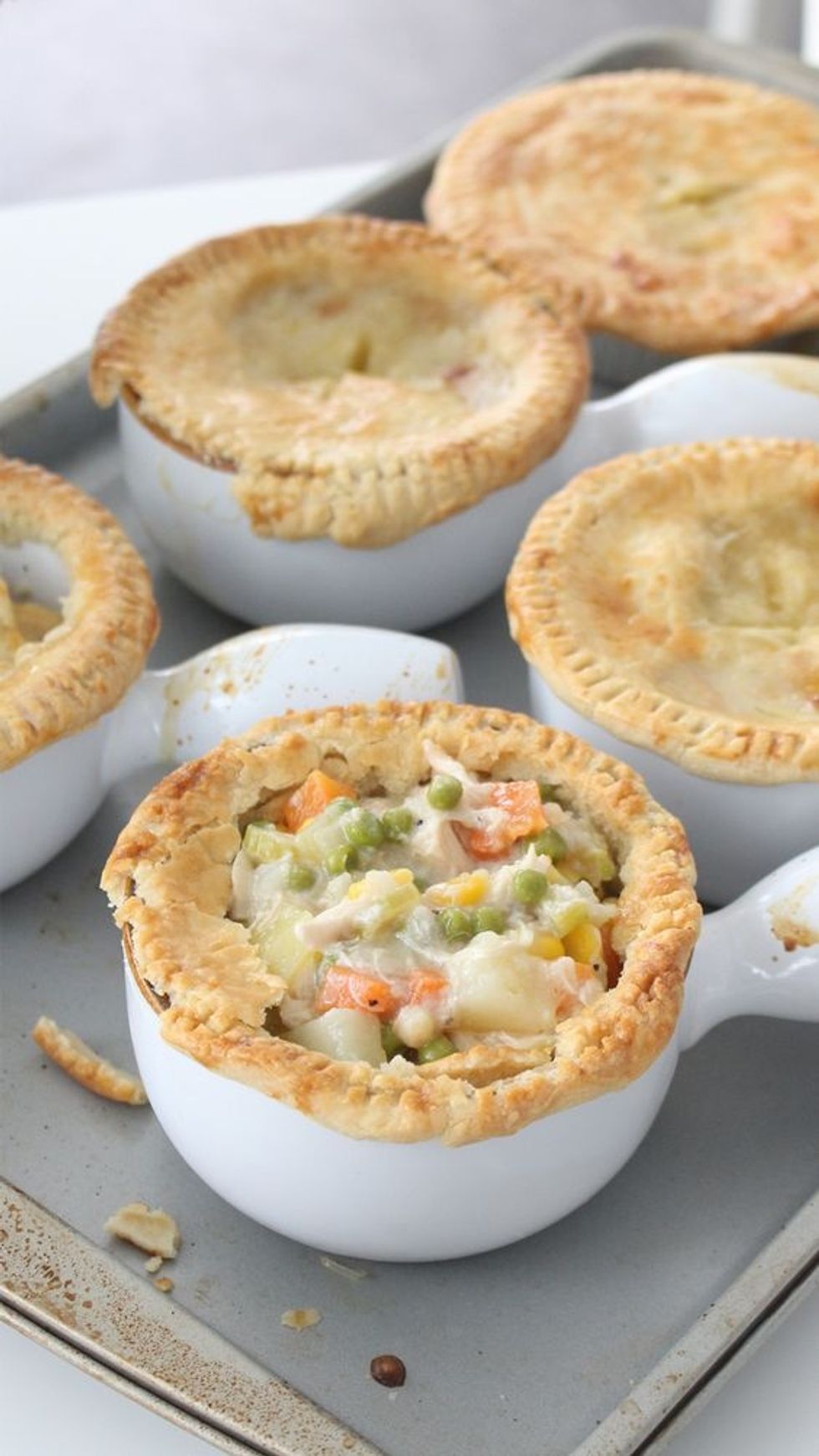 A classic comfort food dish, this simple recipe makes cute, individual chicken pot pies that are to die for.