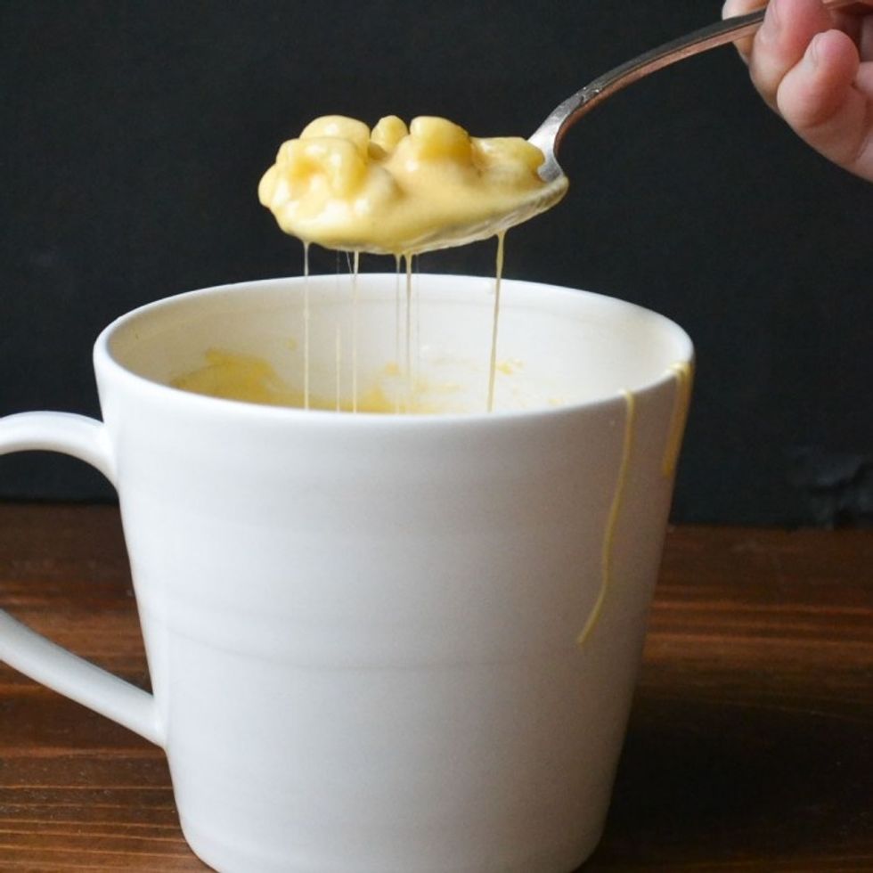No mug recipe list would be complete without the tried and true mac & cheese. This recipe makes creamy macaroni in an instant.
