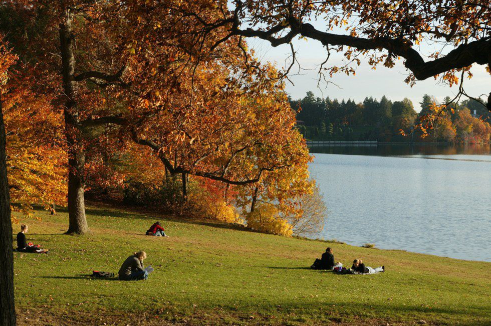 The path winding around this old lake almost feels like another world -- just the other day, I walked by a total of three pine trees adorned with orange slices and cranberries. Senior Xiao Lin claims that "any view is good for crying but the secluded random tree stumps are optimal." An average lap around Lake Waban usually results in at least five dog sightings. You can also take a breather on one of the benches behind the Lake House and Clapp Library. Rachel Hale also recommends "lying in the grass sobbing."