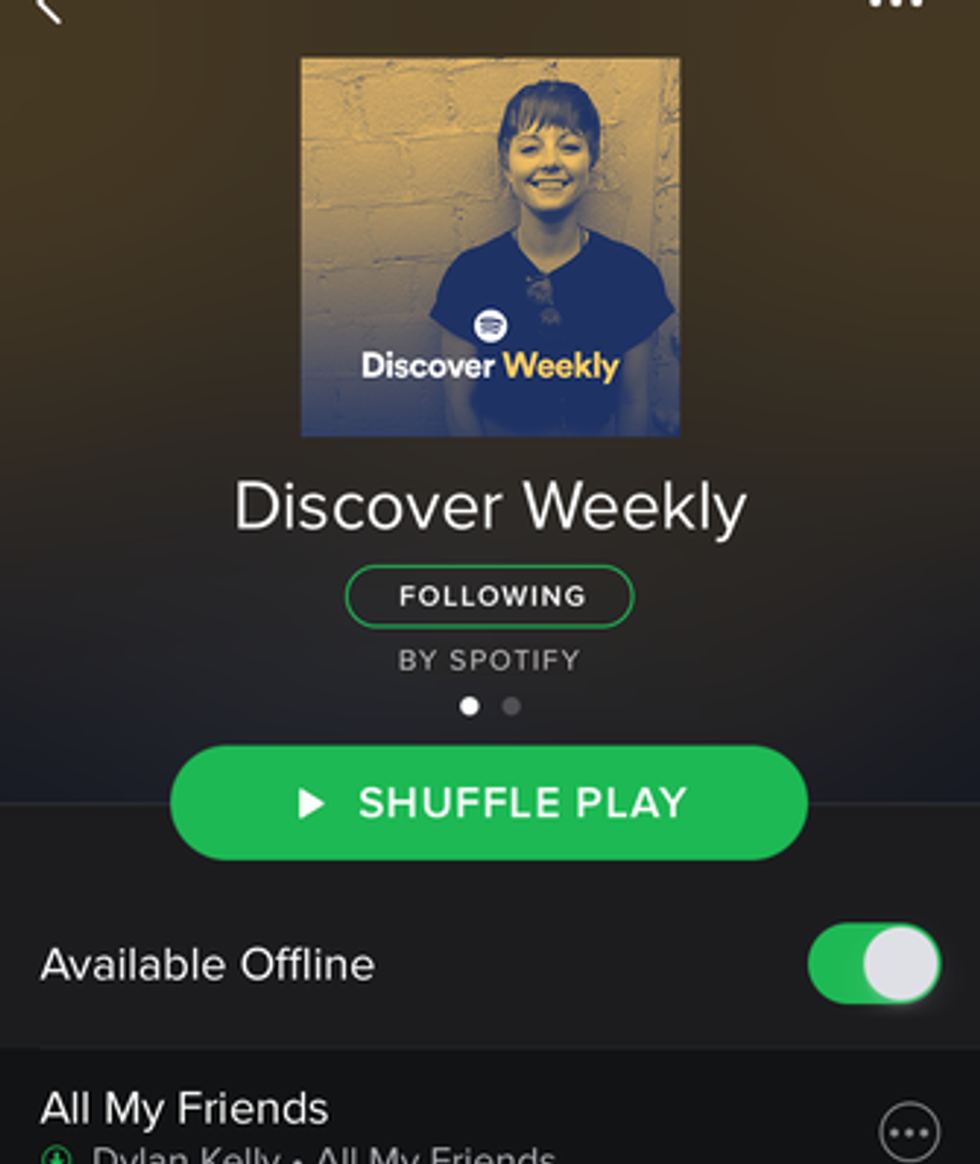 Need new playlist that is already made by, well, you? This is the one. Discover Weekly is based on your listening preferences and the newest hits! It's super cool finding a new favorite jam with just the press of a button!