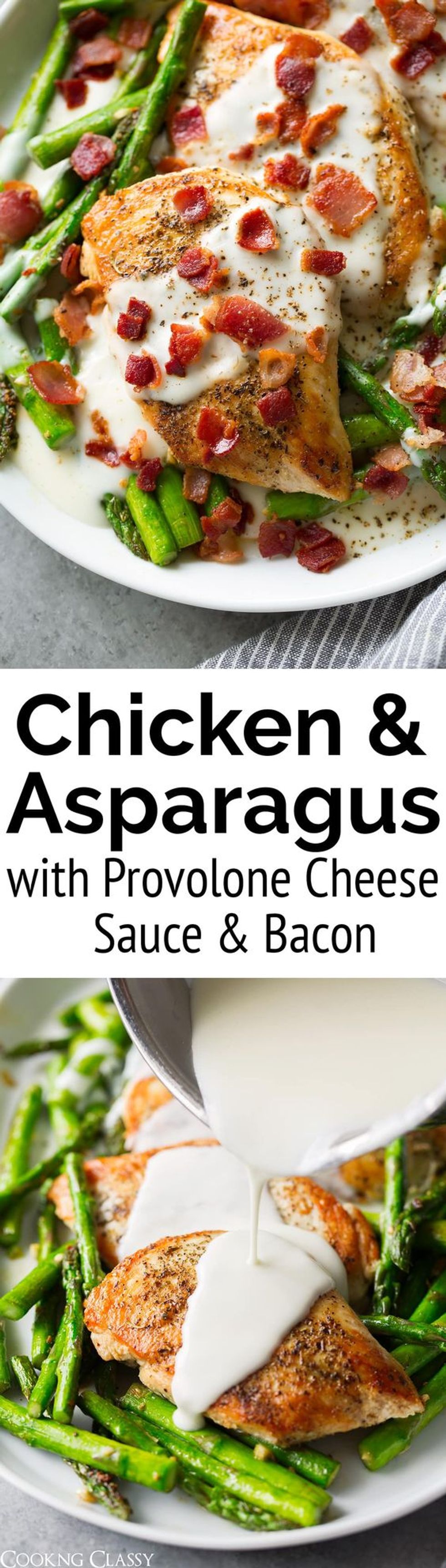 6. Chicken and Asparagus with provolone Cheese Sauce and Bacon