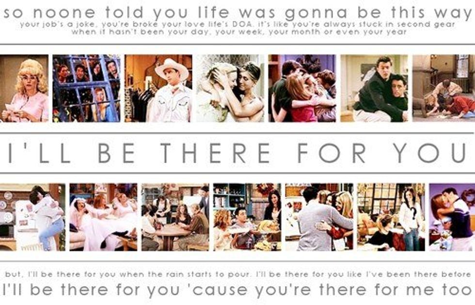 "I'll Be There For You." There isn't a song more perfect for this show! We watch these six friends go through so many challenges and successes over the course of 10 seasons. No matter how many deaths, job losses, breakups, marriages, or just about every other life event, they always stand by each other, always. I mean, really, what describes "FRIENDS" more than always being there for each other?