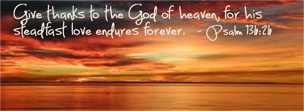 10. Give thanks to the God of heaven, for his steadfast love endures forever. Psalm 136:26