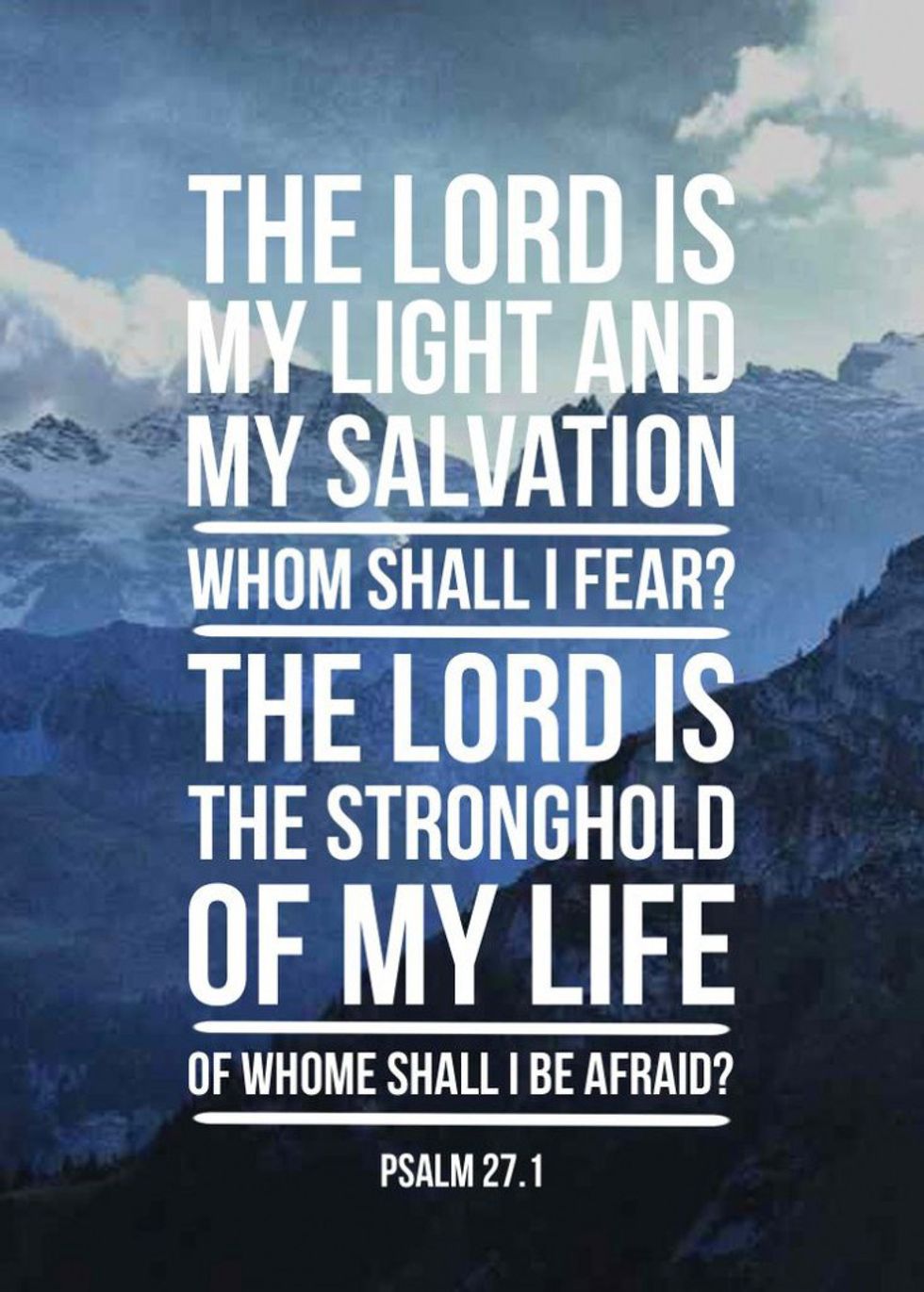 1. "The Lord is my light and my salvation, whom shall I fear? The Lord Is the stronghold of my life, of whom shall I be afraid?" (Psalm 27:1)