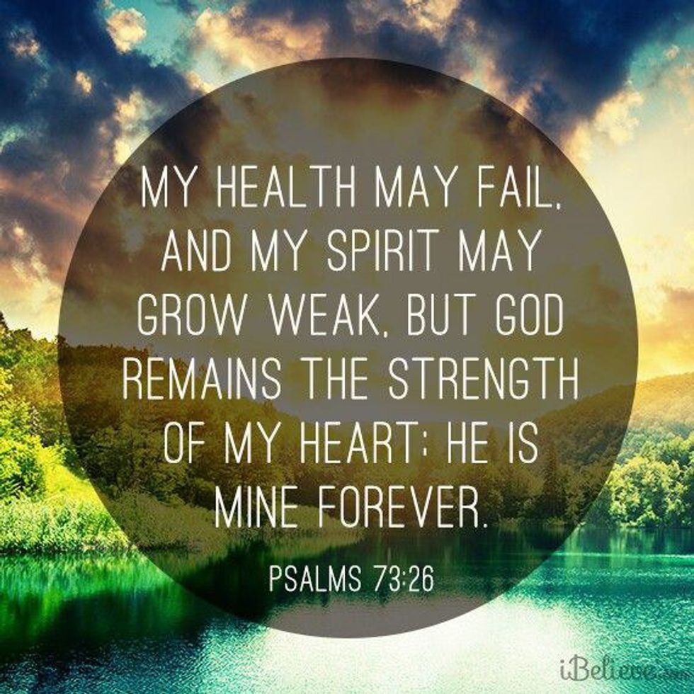 4. "My flesh may fail, and my spirit may grow weak, but God remains the strength of my heart, He is mine forever". - Psalm 73:26