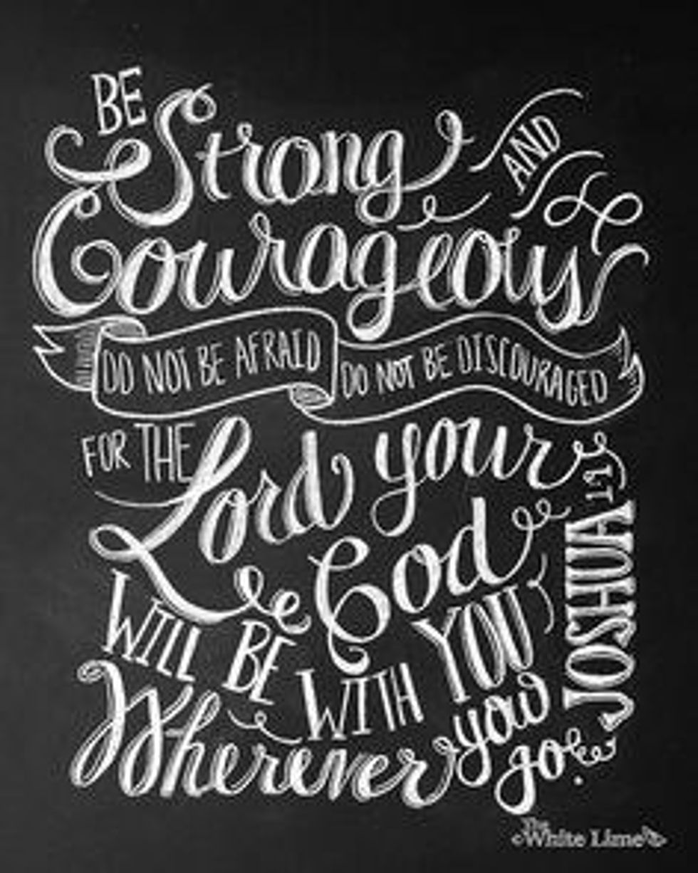 8. "This is my command--be strong and courageous! Do not be afraid or discouraged. For the LORD your God is with you wherever you go". - Joshua 1:9