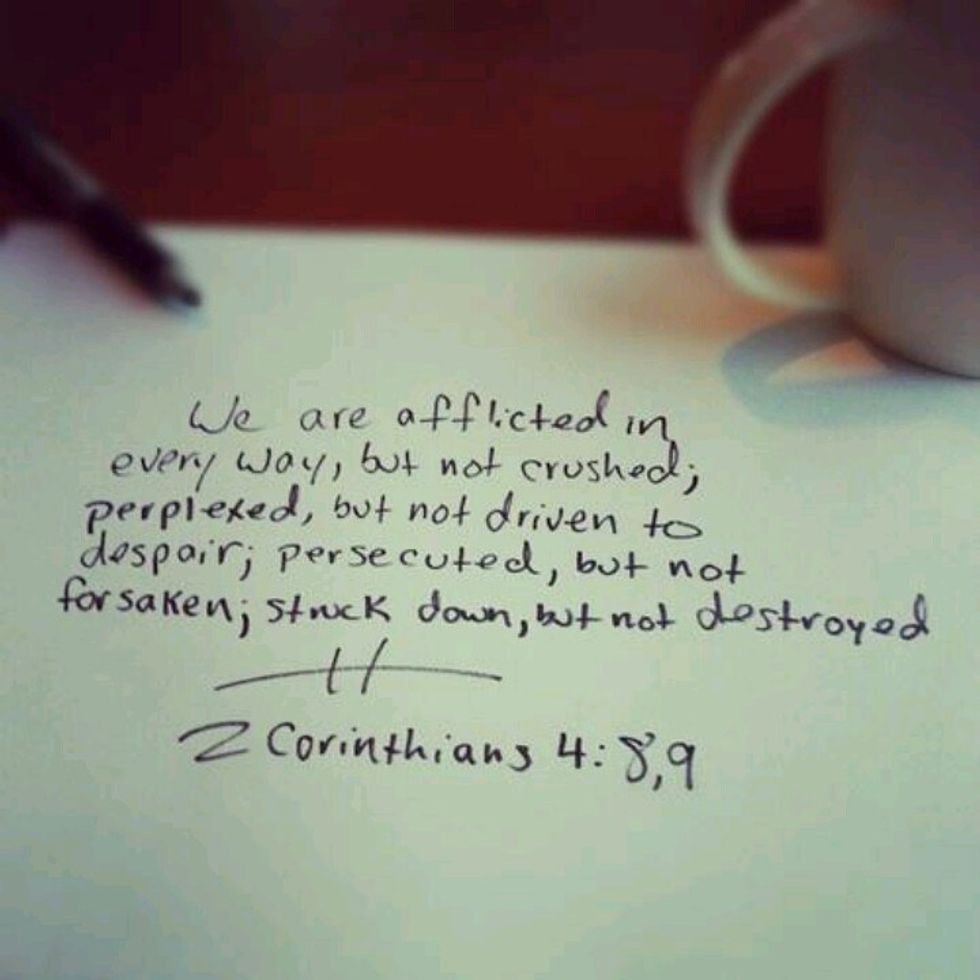 As a college student, I go through many stressful things where sometimes I honestly just feel like I have the weight of the world on my shoulders. Whether it's going through a very tough breakup, losing a friend, having a rumor start about you, getting a bad grade in a test/class, or just feeling like you don't even have time to breathe and you're constantly stressed out, or honestly all of the above, I know I personally can always rely on my faith to help me breathe again. Here are 10 bible verses that help me through my toughest times.