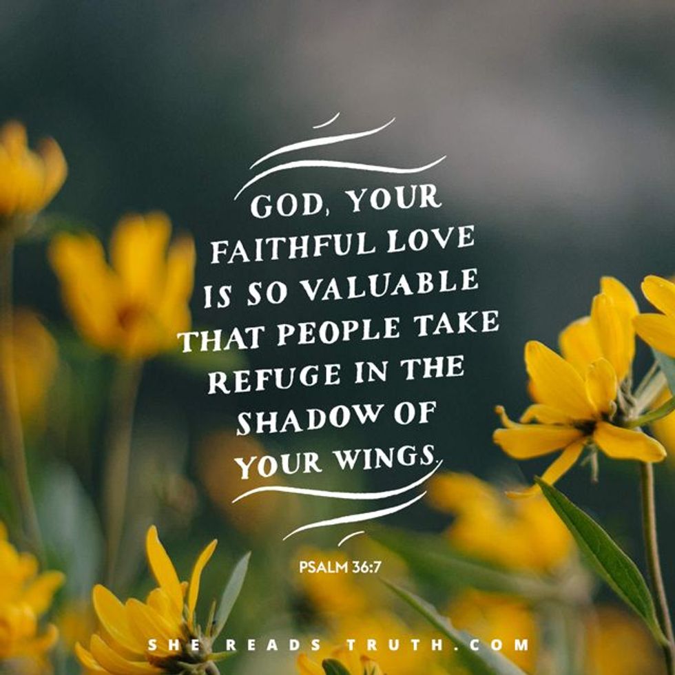 “How priceless is your unfailing love, O God! People take refuge in the shadow of your wings.”