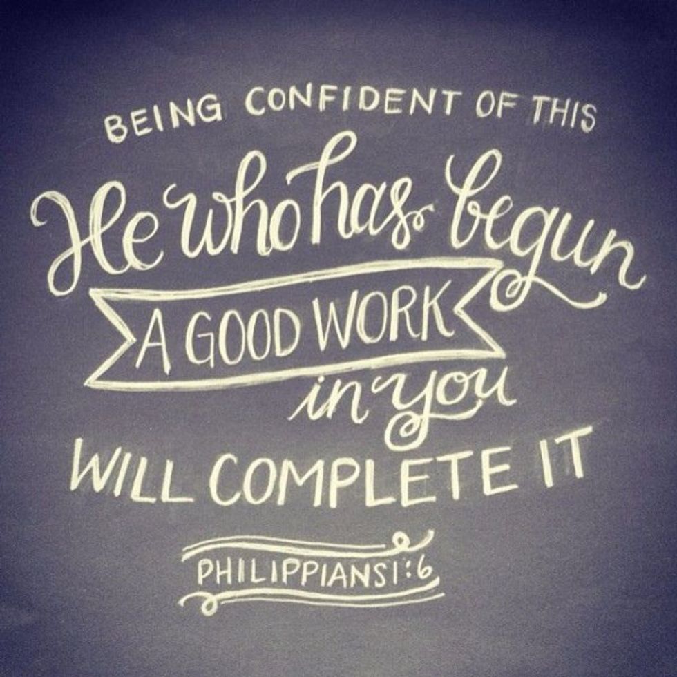 God is doing great things in you, and he will not let it all fall apart in the middle even if you feel incapable of continuing. God will provide all you need to complete the works for his glory.