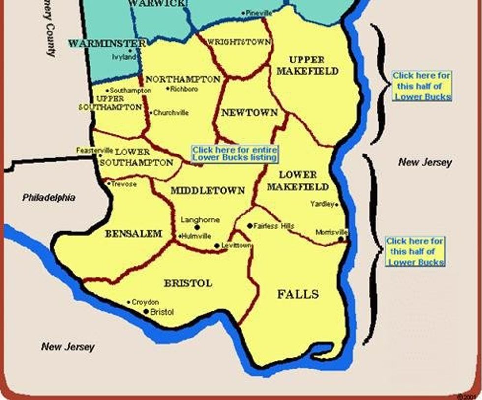 Lower Bucks County is situated in the most perfect little southeastern corner of Pennsylvania. The county is in the suburbs of both Philadelphia and Trenton, about an hour and a half train ride from New York City and Washington, DC and 45 minutes from the Jersey Shore points. There're plenty of historic sites and the area is rich with nature preserves and culture.