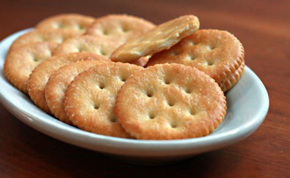 I prefer Ritz, though they aren't the biggest bang for your buck. Snack on a roll to tide you over until your next meal.