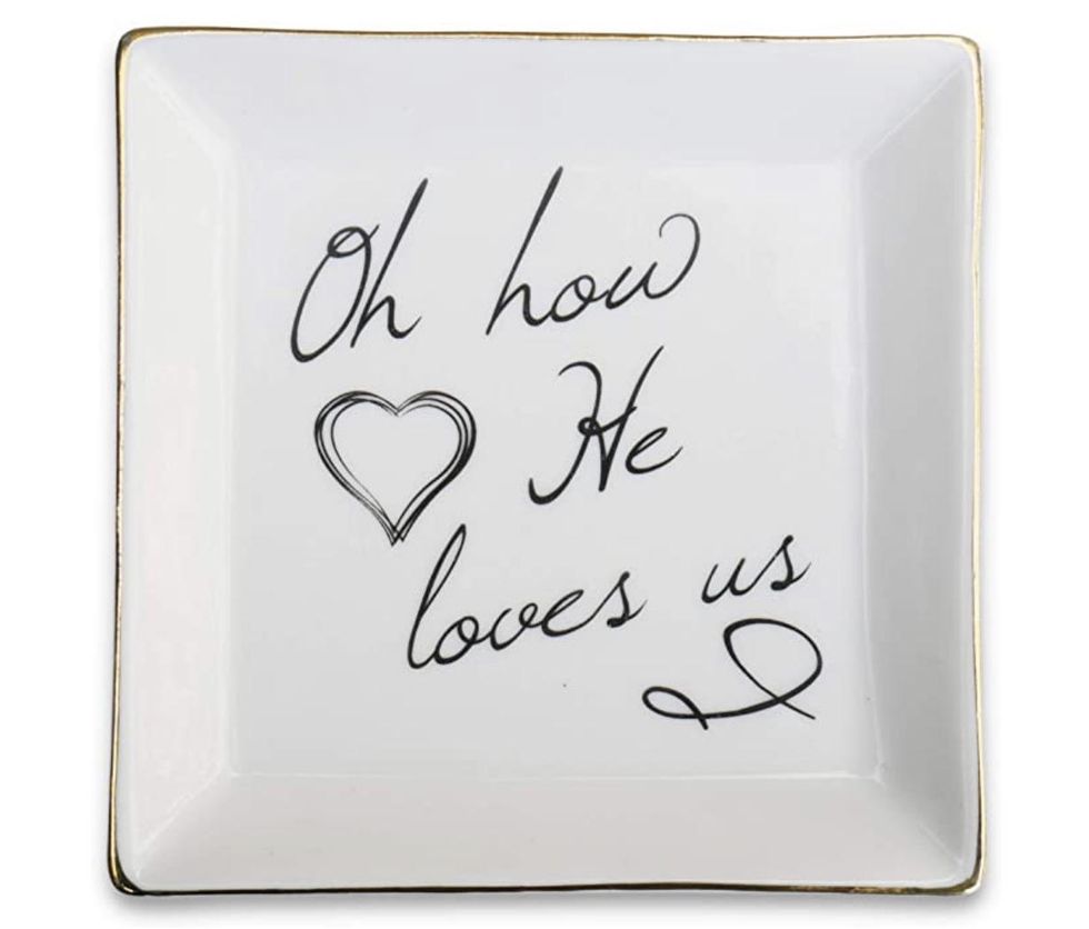 The Jewelry dish is so elegant and says “Oh How He Love Us." Every time your loved one picks out their jewelry, they are reminded of how much God loves them.