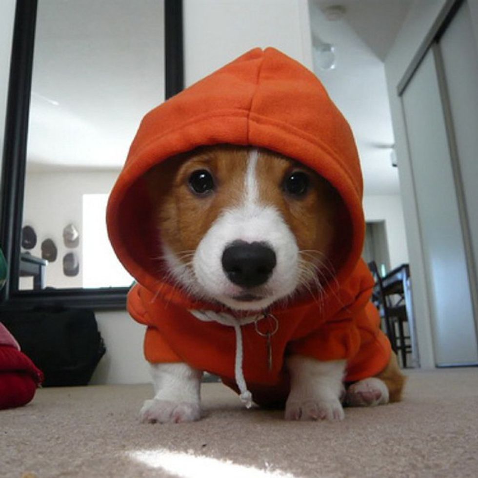 Some dogs hate it, but some dogs can't resist the comfort of a puppy pants! Look at this corgi rockin' this hoodie. LOOK. AT. HIM.