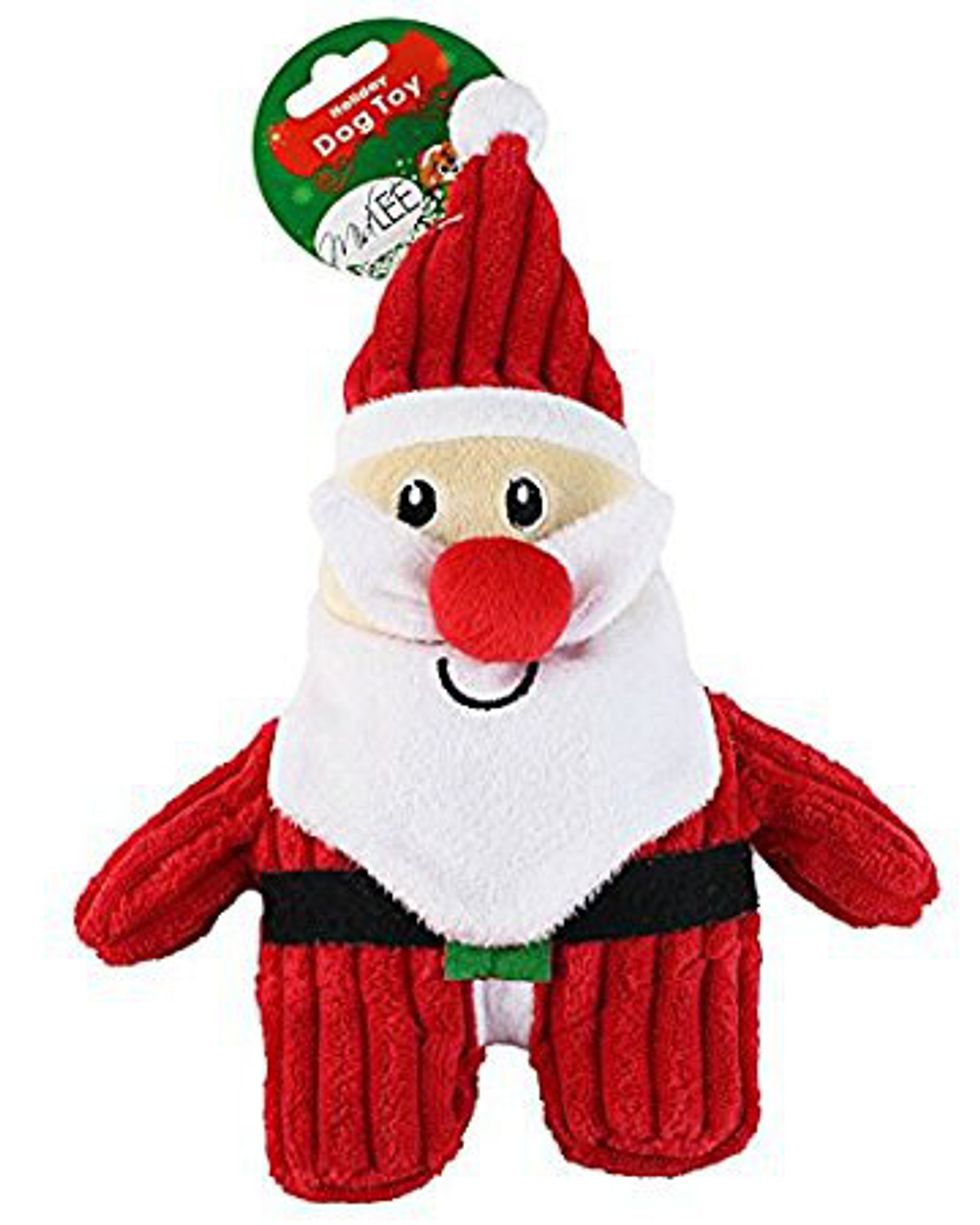 It's soft, it squeaks, AND it wears a Santa hat?! Maximum cuteness.