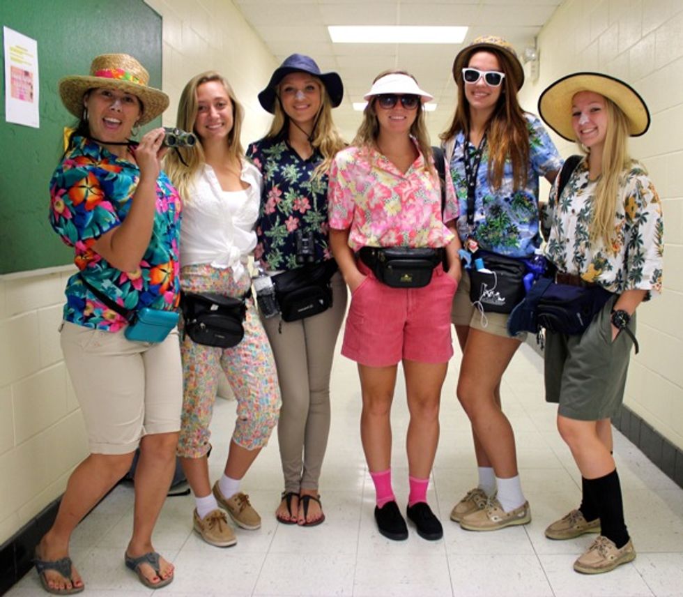 What you need: bucket hat, Hawaiian shorts, fanny pack and socks with sandals. This is a judgement-free zone to wear sock and sandals. For extra fun bring a disposable camera and then you have some old-fashioned documentation of Halloween.