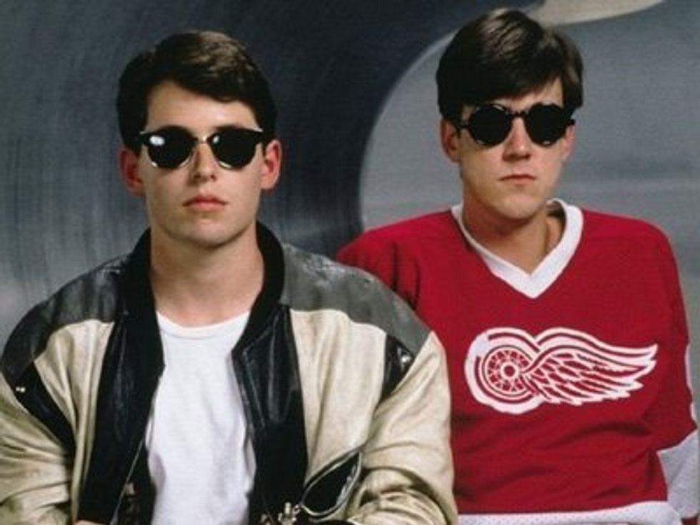 For Ferris: a white shirt, jeans, leather jacket an sunglasses. For Cameron: a Red wings (ew) jersey and sunglasses.
