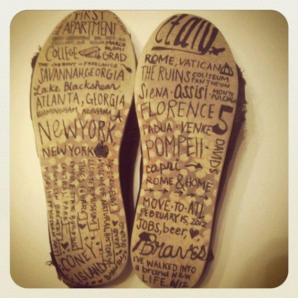 Wherever you end up, you've crossed a lot of ground. Commemorate it by have a special pair of shoes on which you write every location they've been to in Sharpie, or some other symbol that will remind you the miles they've seen.