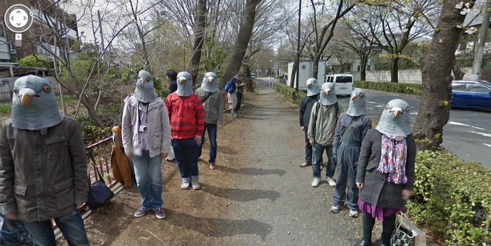 There has to be a logical explanation for this. Maybe they were all on their way to Bird Lover’s convention. That’s a thing…right? Or maybe they are in a school play about birds and they are walking to the theater to perform in front of their family, friends and faculty. That seems unlikely, but what could they be possibly be doing? And why are they all wearing the same exact horrifying mask? Where did they even get those creepy masks? Last time I checked, Party City didn’t carry bird masks that could induce nightmares. They are all walking so perfectly in line with their arms down. Creepy doesn’t do this photo justice.