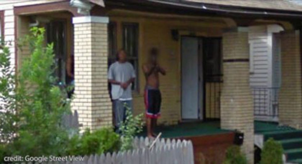 Alright, this one is pretty straightforward. A man is pointing a gun at the Google Street View van. Literally pointing a gun at it. Why? That we do not know. But that doesn’t make it any less scary. Also, could this lead to legal trouble for the boy in the photo? In order for that to be answered, a lot of questions would need to be answered. You do have a right to bear arms in your home. So, if the boy does live in the house in the photo, this would not be a legal issue. Is this person an adult or a juvenile? Another question that needs to be answered. Upon further investigation, the story takes an unsettling turn. The residence is the same address where a baby was found dead under a pile of clothes in a closet when her family members were supposed to be babysitting her.