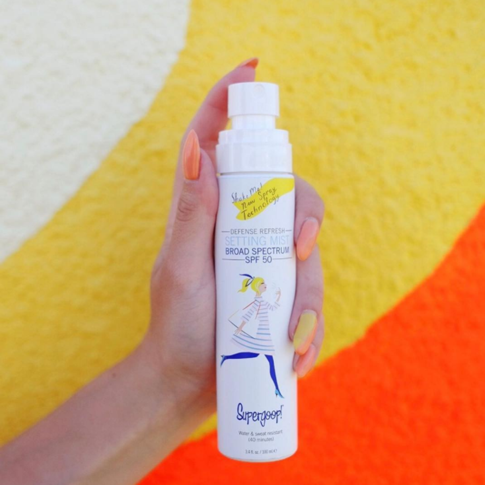 They offer a range of face, body, and lip products with different levels of SPF including their Defense Refresh Setting Mist SPF 50 which smells like rosemary and makes my makeup last all day.