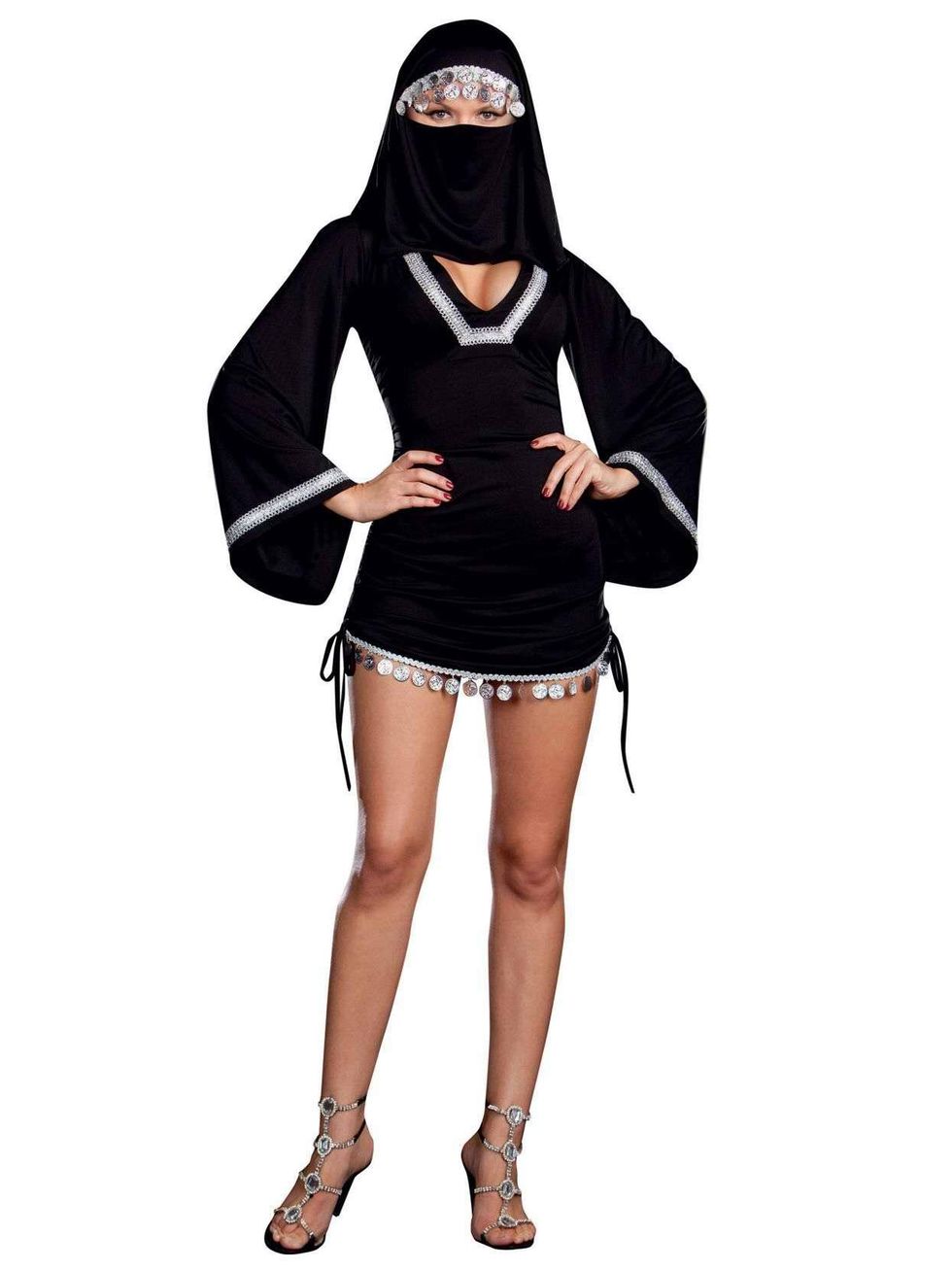 The burqa is worn by some Muslim woman and goes along with modest, covered up attire. This costume makes fun of a whole religion and misrepresents a religious symbol through revealing clothing and mockery.