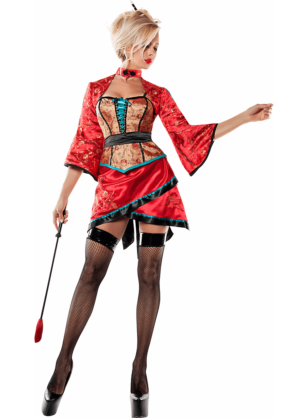 This "Geisha" costume hyper-sexualizes East Asian women by reinforcing the negative impression that East Asian women are submissive. This costume objectifies women and promotes misogyny.