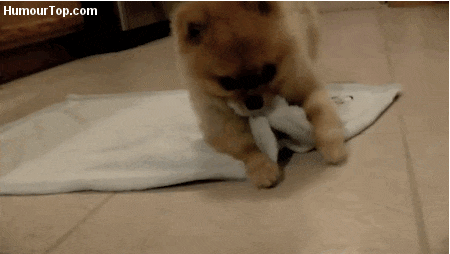 8. One of the best things about puppies is how inherently curious they are about mundane objects. This pup demonstrates the steps to conquer the doorstop: paw at it fiercely, release, and bark in dominance.