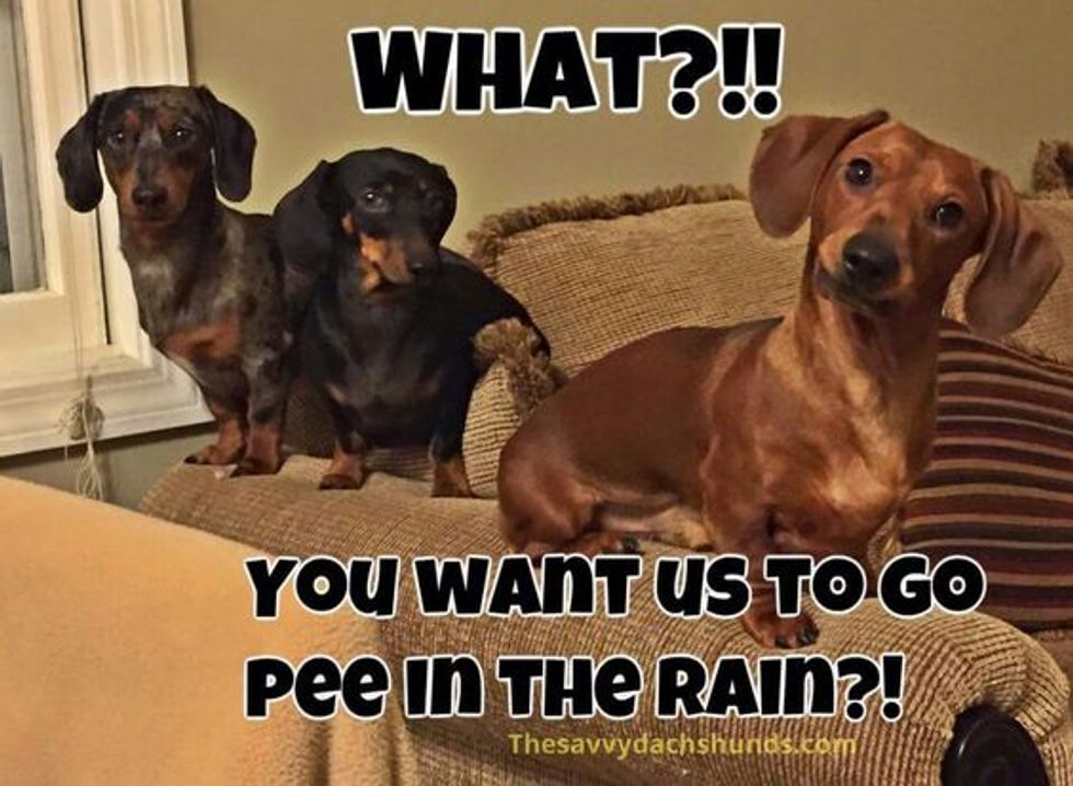7. They will NOT go outside if it is raining…unless you make them.