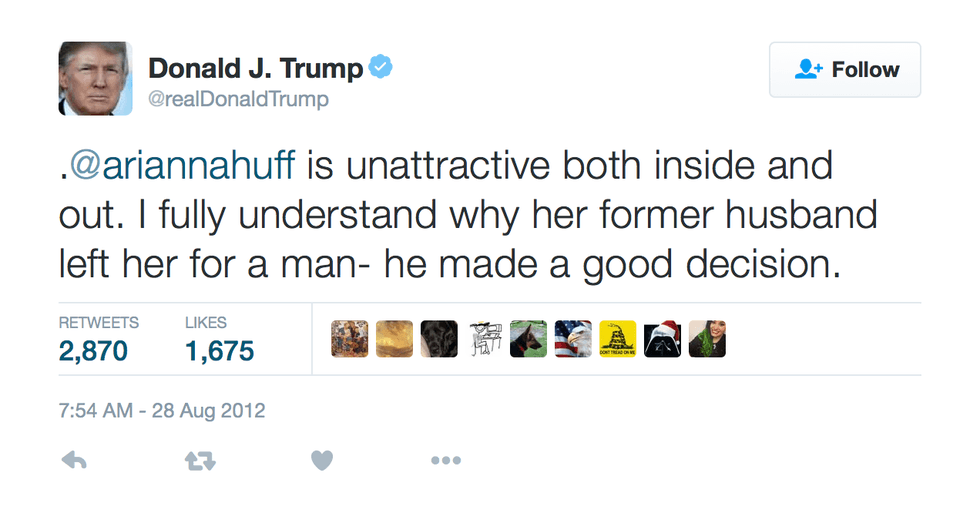 3. 2015: “Ariana Huffington is unattractive, both inside and out. I fully understand why her former husband left her for a man -- he made a good decision.”
