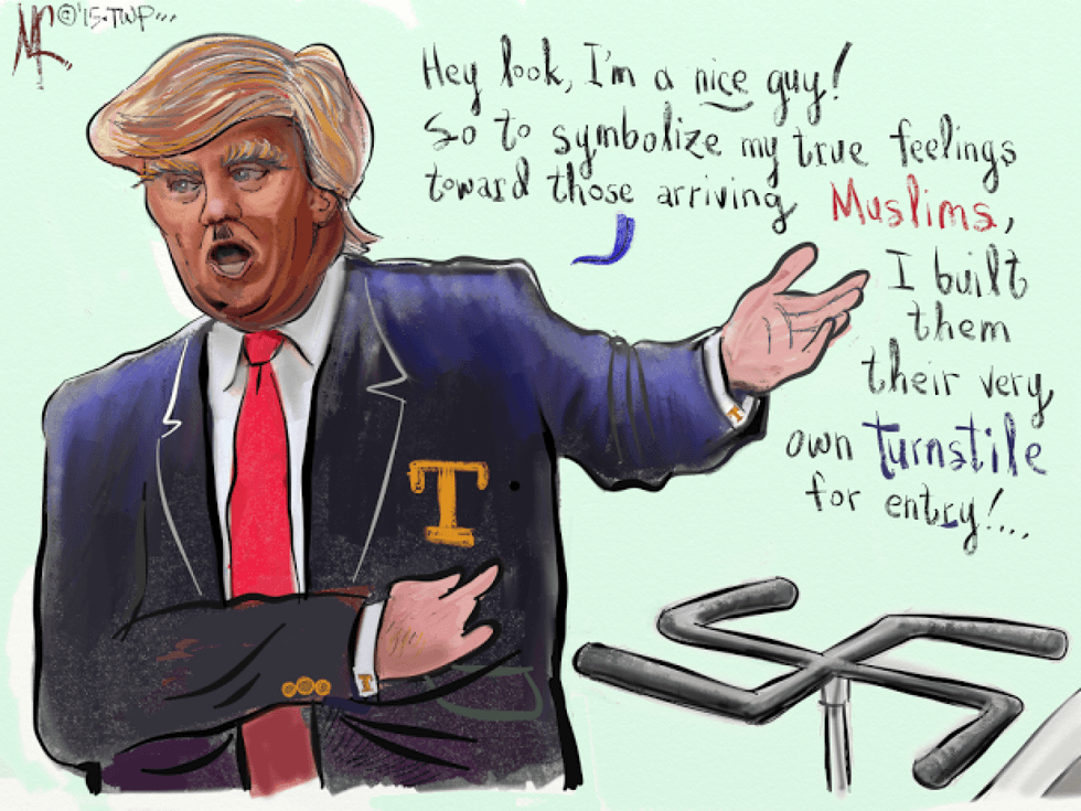 This position expressed by Trump’s campaign team is humorous because the Trump brand is seen on a property in Turkey, as well as one under development in Bali, along with a golf course in Dubai. He also contradicted himself back in September saying, "Would I consider putting a Muslim American in my cabinet? Absolutely no problem with that, OK?" Come on, Donny, get your opinions straight.