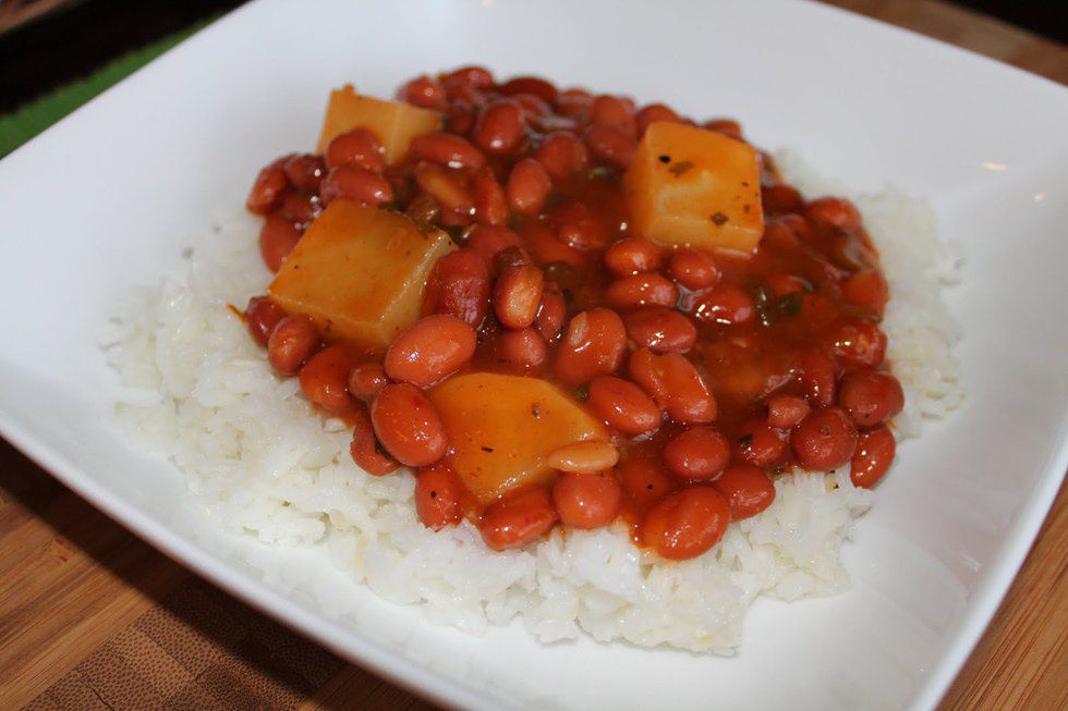 According to Wikipedia, "Arroz con gandules is a combination of rice, pigeon peas and pork, cooked in the same pot with Puerto Rican-style sofrito. This is one of the signature rice dishes of Puerto Rican cuisine." Not to mention, it's delicious.