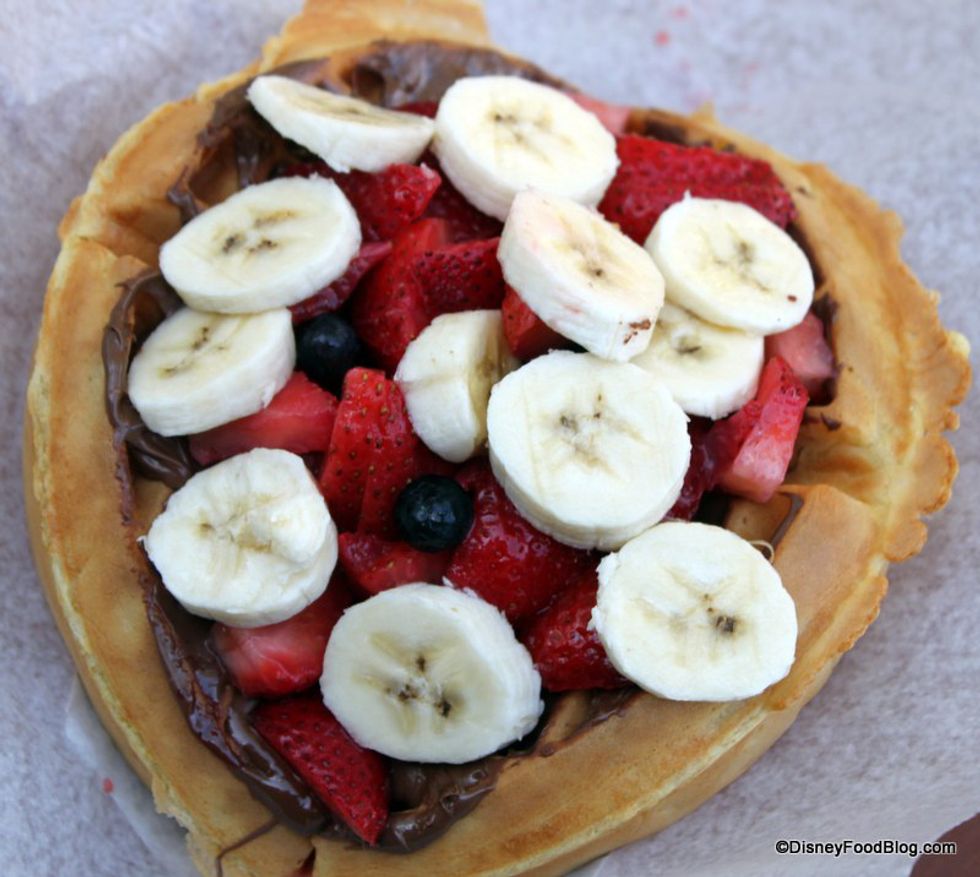 This snack is more like a meal, but it's perfect for anyone with a sweet tooth! It's a light and fluffy Belgian waffle, topped with Nutella and assorted fruit. This sweet sandwich can be found at Sleepy Hallow in the Fantasyland section in Magic Kingdom.