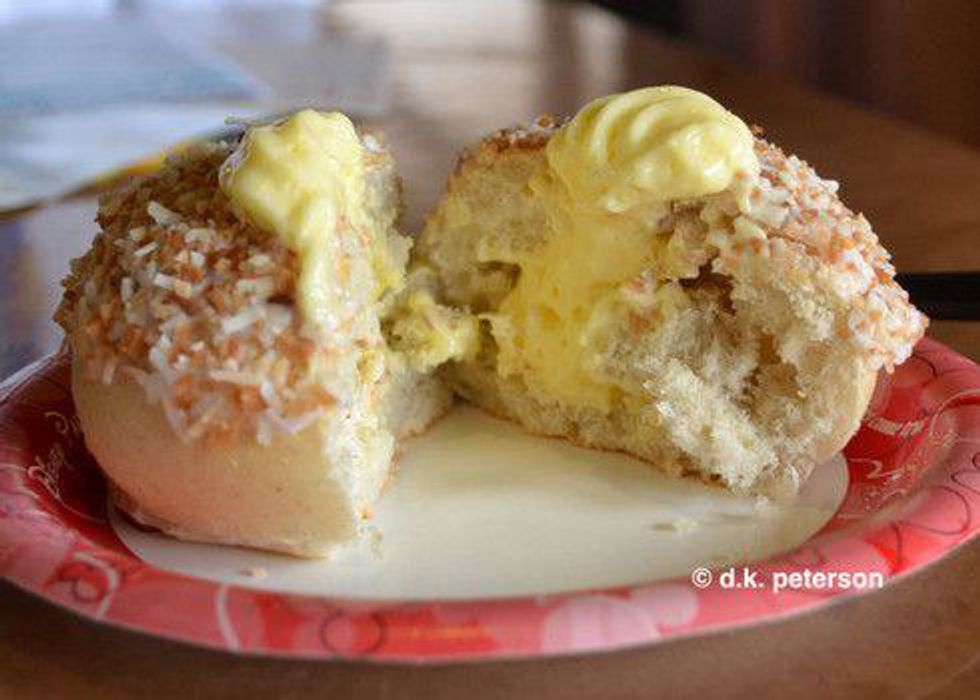 This bakery fresh treat is deliciously different from classic American bakery treats. It is a sweet bread roll, filled with vanilla custard, and covered with icing and toasted coconut. This simple treat is simply delicious. It can be found in the Norway pavilion of EPCOT.