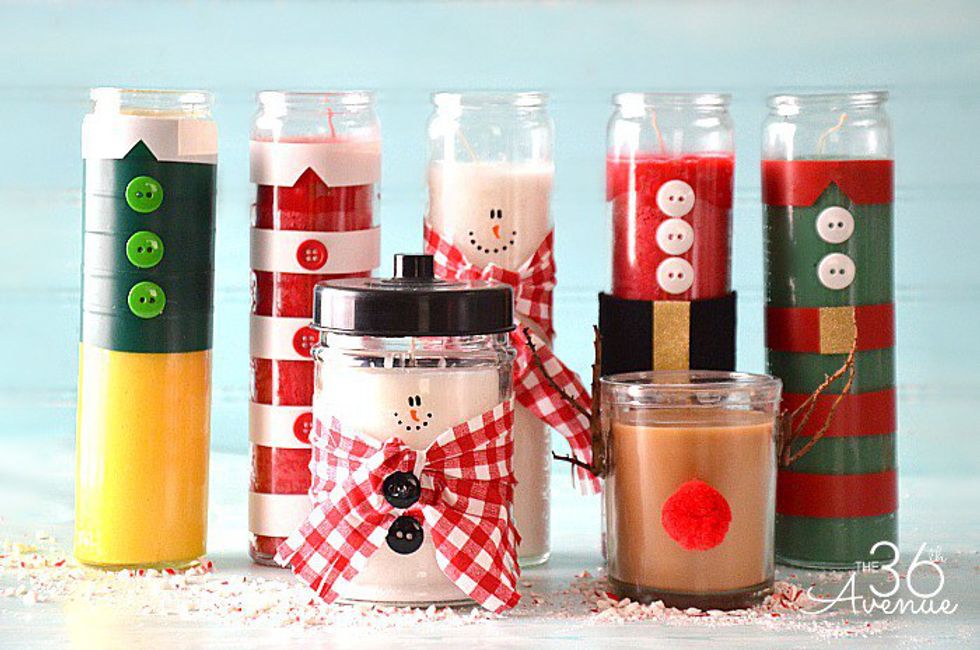 Who doesn't love candles? If you don't you are crazy! I do think the glass of some candles are plain but you can spice it up with anything really but with this time of year Christmas decor is the way to go. They can go in your home or you can even give them for gifts.