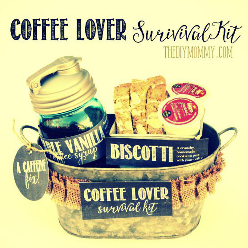 Gift baskets are easy, inexpensive, and fun to put together. This coffee one from The DIY Mommy is an awesome idea for any caffeine addict. Here's how to make it.