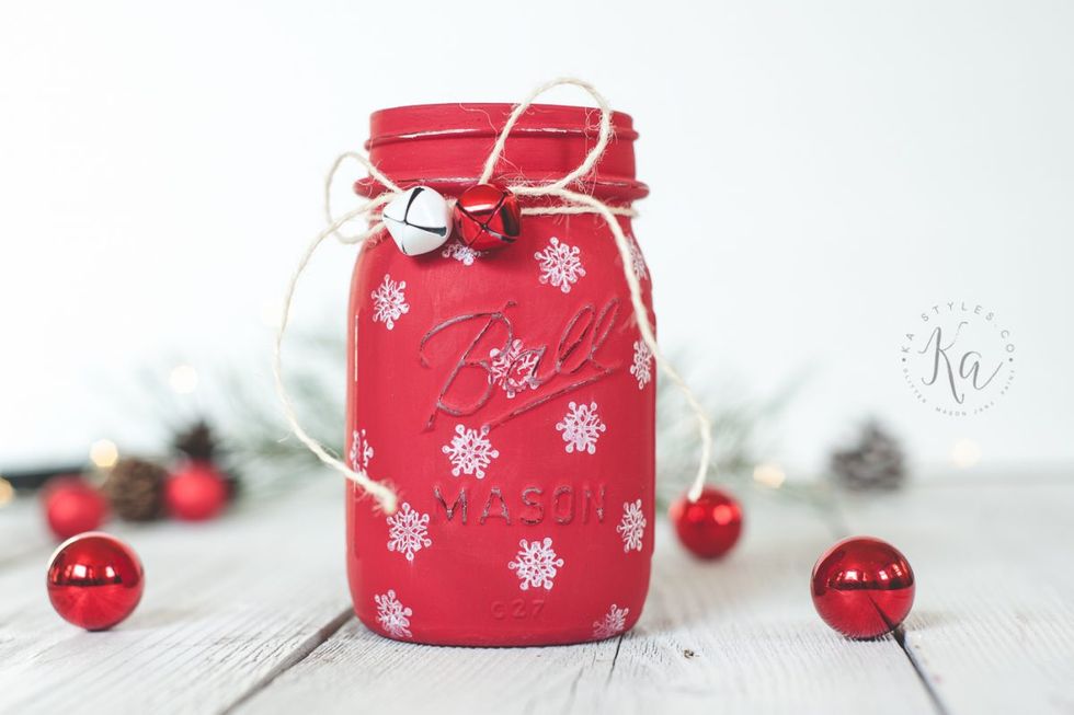 Another one of my favorite things to do is paint mason jars. Since Christmas is coming up, I'm starting to make Christmas themed ones. I came across Kelly's idea on Pinterest and I fell in love! A link to her tutorial can be found here