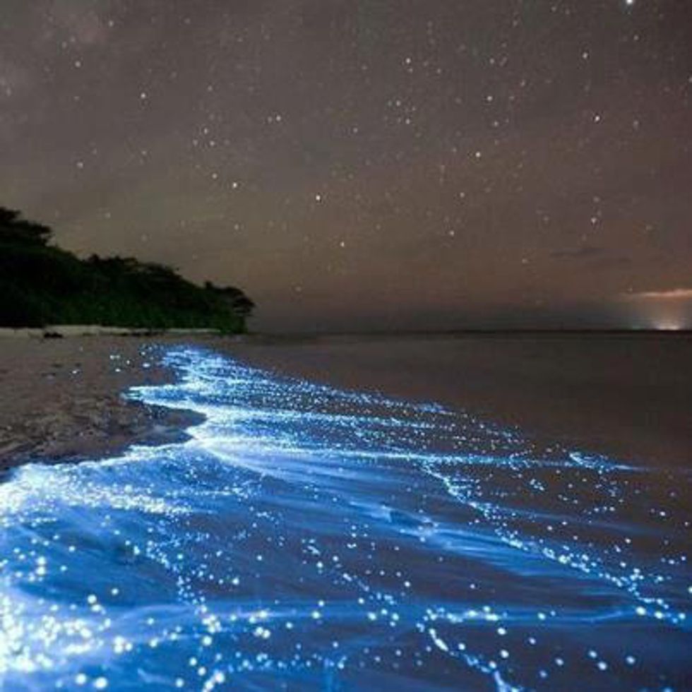This microorganism comes by the millions and illuminates blue when pressured. This means with every footstep you take you leave a beautiful trail of blue light. And when waves come crashing down the beach becomes a romantic light show. Located in select places in California, Florida and around the world, this would be the perfect setting to take a date.