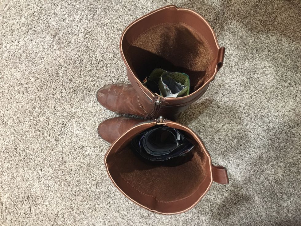 Prevent boots from folding over by rolling up pages from a magazine and placing them inside each boot.