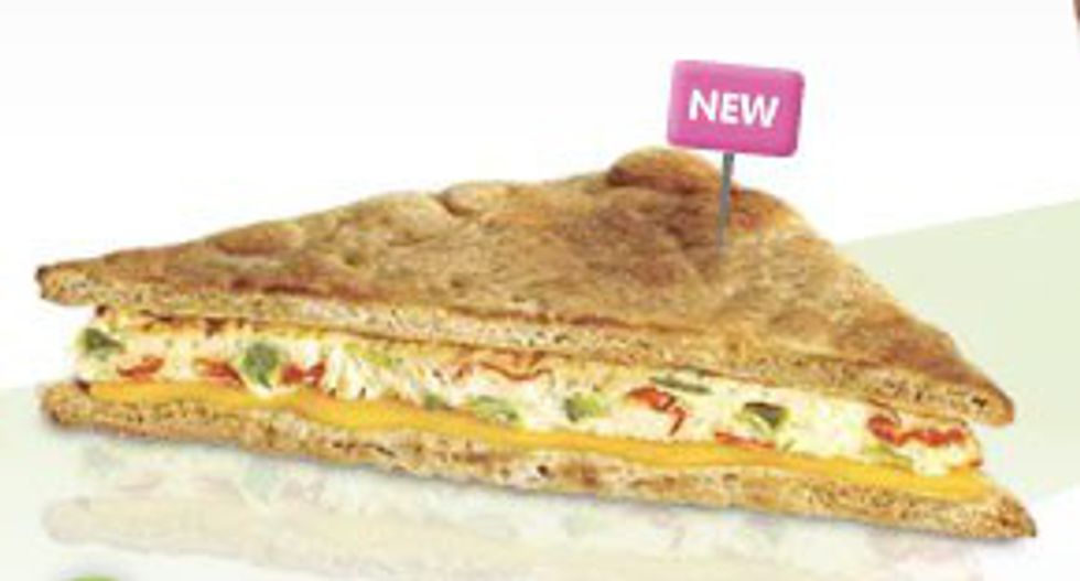 6. Egg White Veggie Flatbread Sandwich — 280 calories
