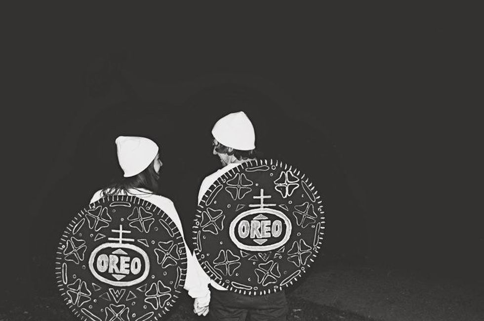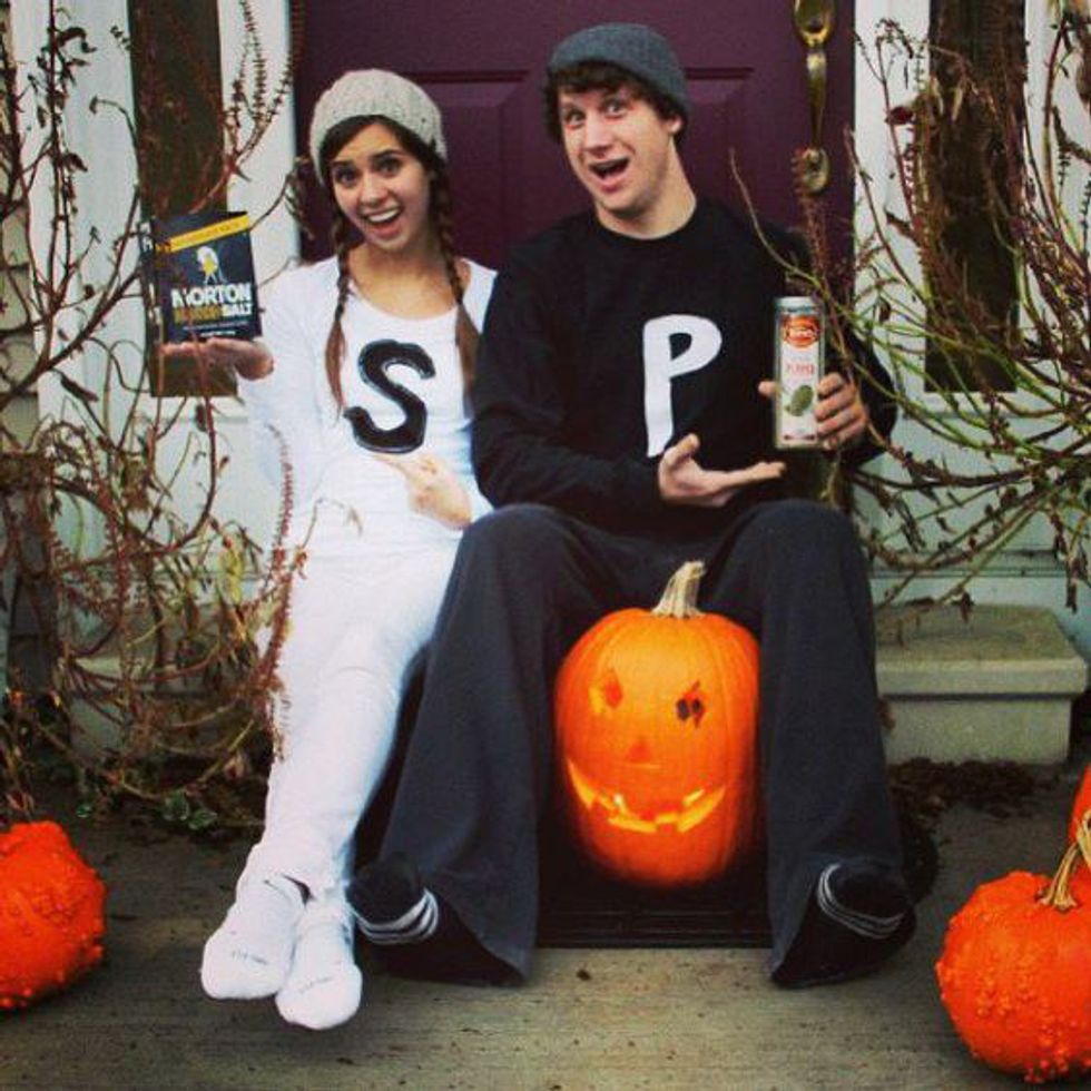Happy October! Halloween is here and that means costumes, candy corn, apple cider, and parties. I love Halloween. I love dressing up, learning how to do some cool makeup, and having a family party at my grandma's house, complete with a homemade haunted house. I am also a proud supporter of couple costumes. What is so bad about two people, whether friends, lovers, or even a big group, matching their outfits? Some costumes are cheesy, expensive, or a little dirty, so here is a list of cheap, easy, last minute, appropriate, and cute couple costumes.