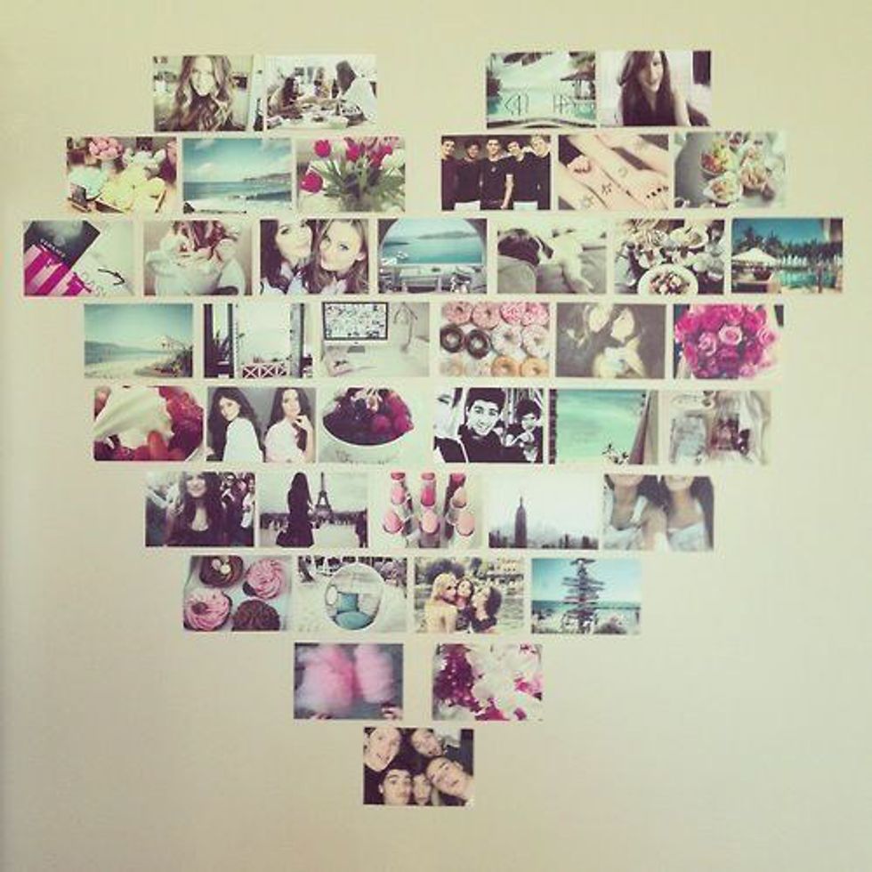 This is literally one of the simplest and cutest ways to cover up the boring white wall that most college rooms have. All you need are tape and printed photos. Feel free to make the heart taller or wider by spacing out photos and rows more. Just try using the same amount of photos in each row, so it actually looks like a heart in the end. I did this in my dorm room and found it best to start with the middle row!