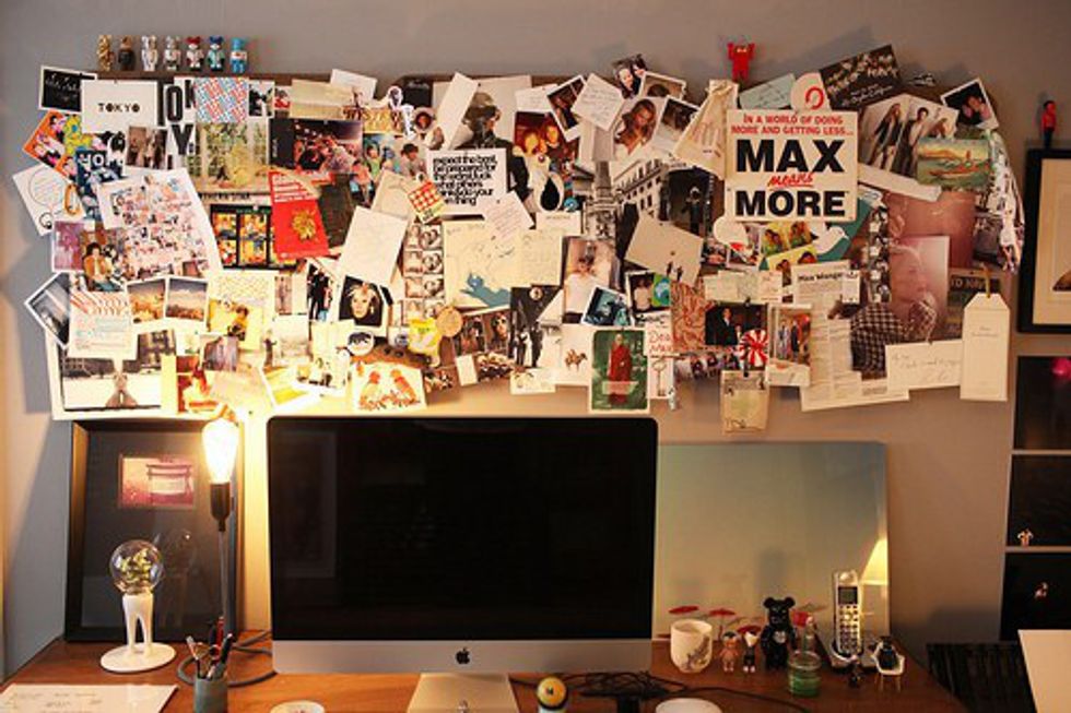 The cork board in the picture above is pretty wide, but you could use a smaller one because cork boards come in all different sizes and shapes. I have one in my dorm room that's travel-themed, but you could make yours band-themed, fashion-themed, family-themed, etc. Just print out pictures or find some in magazines, and you'll be good to go!